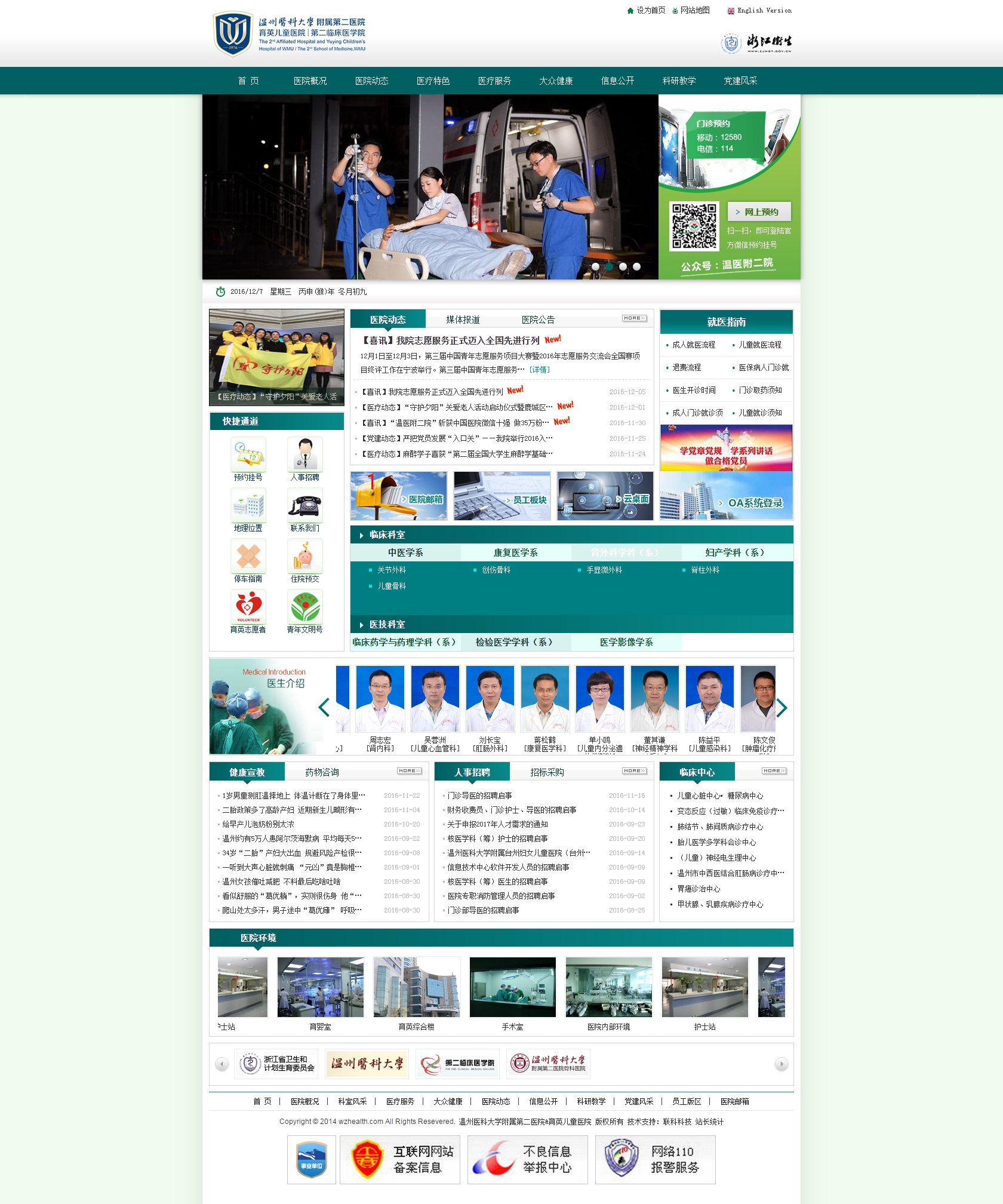 溫州醫(yī)科大學(xué)附屬第二醫(yī)院、育英兒童醫(yī)院座落于浙江省東南沿海之濱---溫州,是浙江省屬三級甲等綜合性醫(yī)院,系溫州醫(yī)科大學(xué)第二臨床醫(yī)學(xué)院。醫(yī)院始建于1976年,前身為“溫州醫(yī)學(xué)院白求恩門診部”,1982年經(jīng)浙江省衛(wèi)生廳批準改建為溫州醫(yī)學(xué)院附屬第二醫(yī)院。1988年同時兼掛“兒童醫(yī)院”牌子。1991年在臺胞何朝育先生的捐助下,新建了兒童醫(yī)院大樓,同時將“兒童醫(yī)院”改名為“溫州醫(yī)學(xué)院附屬育英兒童醫(yī)院”。2004年浙江省衛(wèi)生廳授予我院“浙江省立育英醫(yī)院”牌子。2005年兼并溫州心血管病醫(yī)院,掛牌為附屬第二醫(yī)院南浦院區(qū)