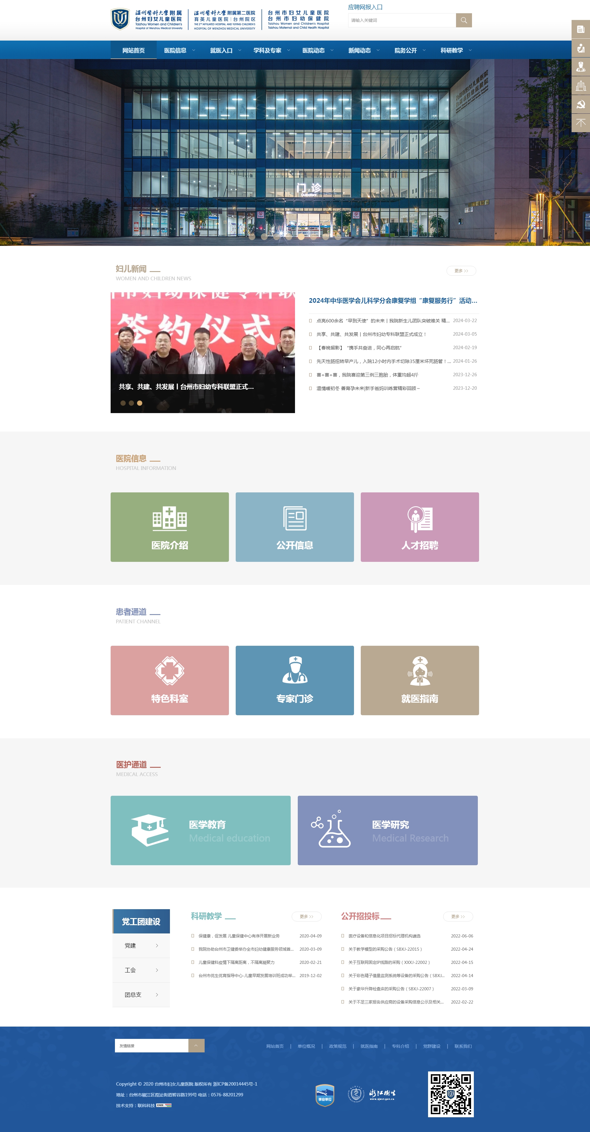 溫州醫(yī)科大學附屬臺州婦女兒童醫(yī)院前身為臺州市婦幼保健院,始建于1976年。2016年5月,臺州市人民政府與溫州醫(yī)科大學達成戰(zhàn)略協(xié)議,授權臺州市衛(wèi)計委與溫州醫(yī)科大學附屬第二醫(yī)院、育英兒童醫(yī)院正式簽約,合作共建溫州醫(yī)科大學附屬臺州婦女兒童醫(yī)院,又稱溫州醫(yī)科大學附屬第二醫(yī)院、育英兒童醫(yī)院臺州院區(qū)。