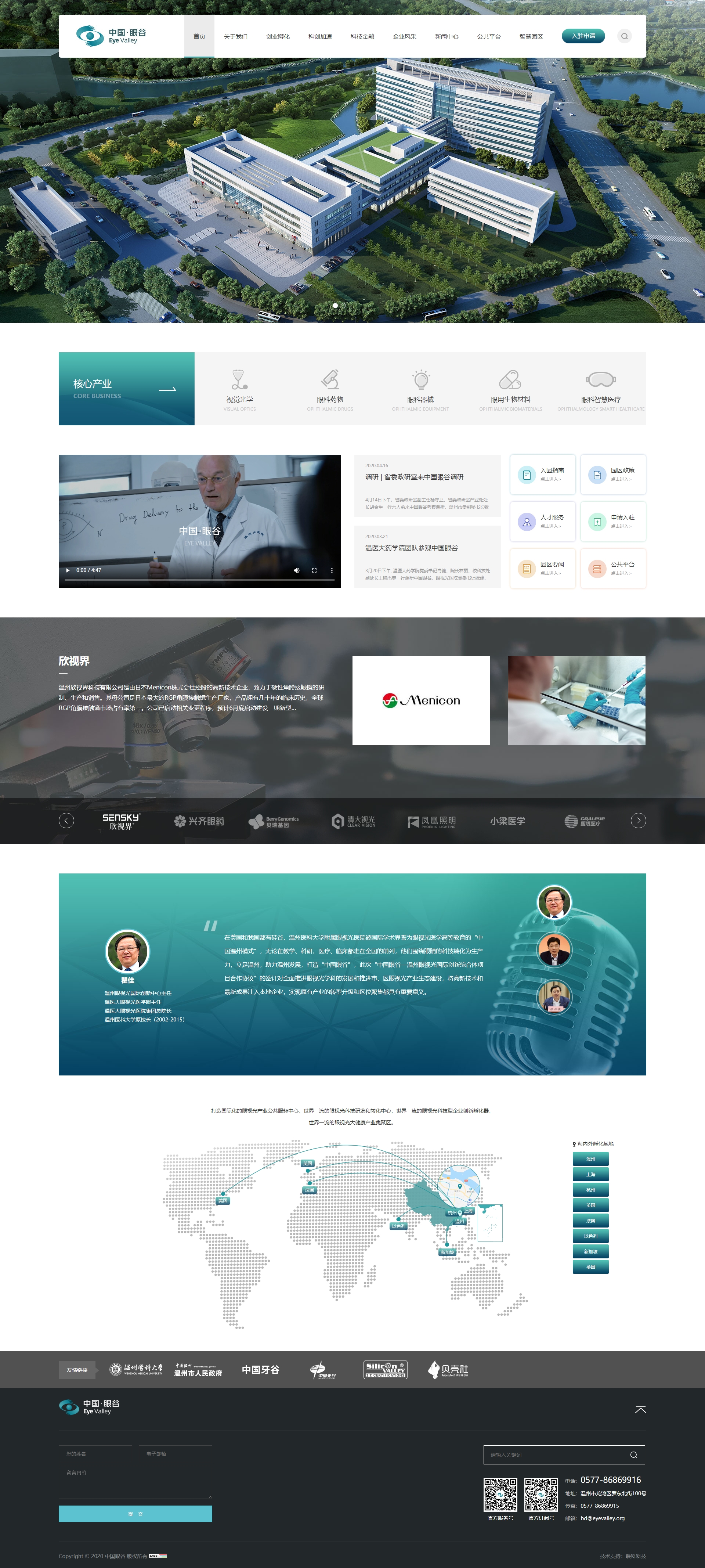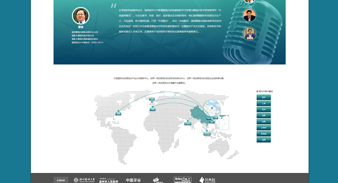 溫州醫(yī)科大附屬眼視光醫(yī)院聯(lián)合溫州市龍灣區(qū)(高新區(qū))建設(shè)“中國眼谷-溫州眼視光國際創(chuàng)新綜合體”,依托醫(yī)院在眼視光領(lǐng)域全國頂尖、世界一流的醫(yī)教項(xiàng)目先期投入7億元建設(shè)占地80畝、建筑面積8萬平方米的孵化園區(qū),后期配套建設(shè)占地1000畝的科創(chuàng)園,與龍灣生命科技園形成“一體兩翼”大格局。