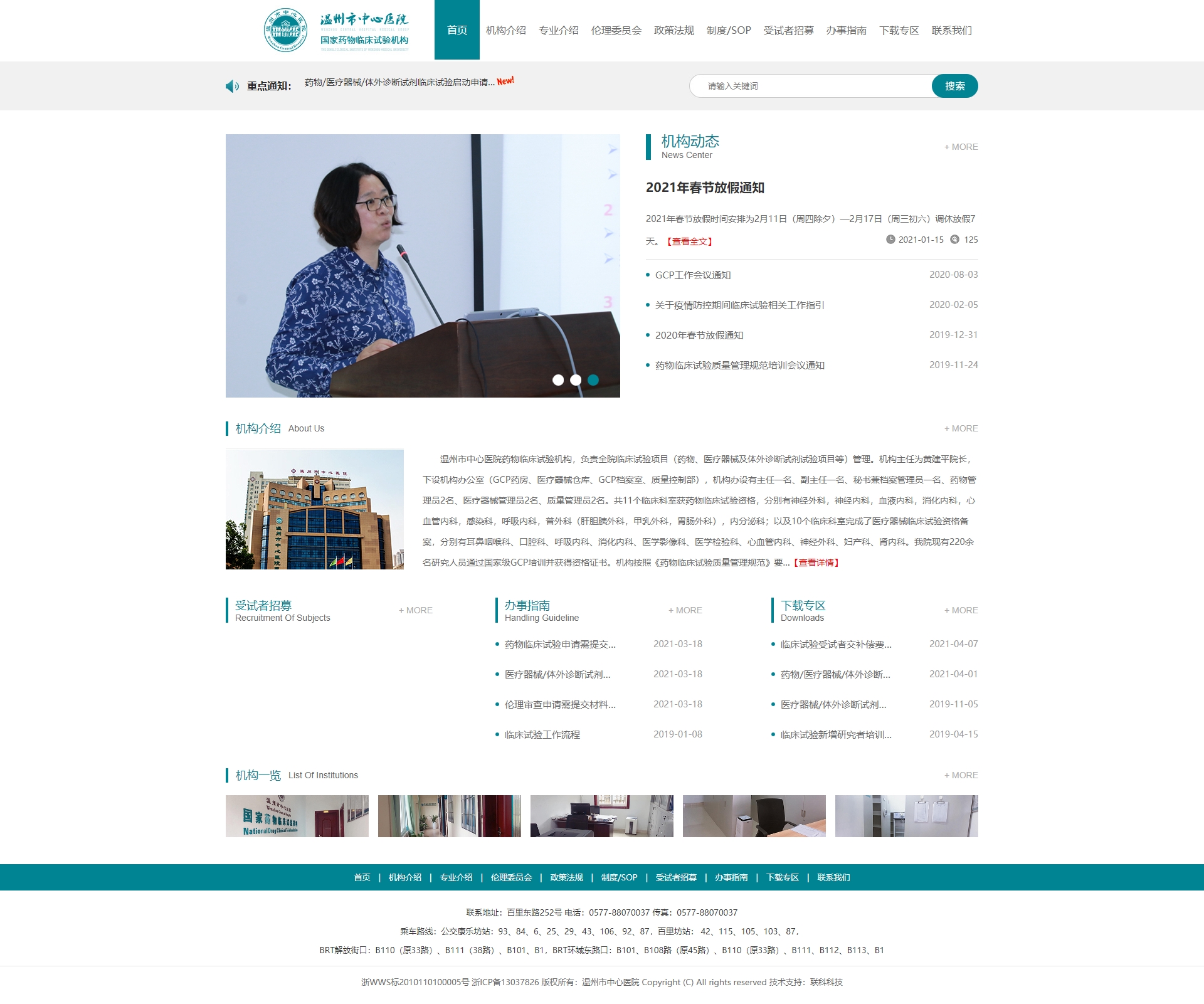 溫州市中心醫(yī)院藥物臨床試驗(yàn)機(jī)構(gòu),負(fù)責(zé)全院臨床試驗(yàn)項(xiàng)目(藥物、醫(yī)療器械及體外診斷試劑等)管理。機(jī)構(gòu)主任為黃建平書記,機(jī)構(gòu)副主任張立群院長(zhǎng),下設(shè)機(jī)構(gòu)辦公室(GCP藥房、醫(yī)療器械倉庫、GCP檔案室、質(zhì)量控制部),機(jī)構(gòu)辦設(shè)有主任1名、副主任1名、秘書兼資料管理員1名、藥物管理員2名、醫(yī)療器械管理員2名、質(zhì)量管理員2名。共11個(gè)臨床科室獲藥物臨床試驗(yàn)資格,分別有神經(jīng)外科,神經(jīng)內(nèi)科,血液內(nèi)科,消化內(nèi)科,心血管內(nèi)科,感染科, 呼吸內(nèi)科,普外科(肝膽胰外科,甲乳外科,胃腸外科),內(nèi)分泌科。