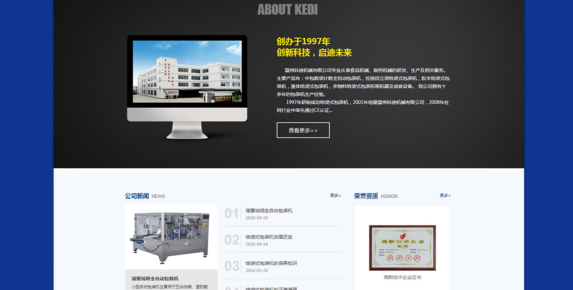 溫州科迪機(jī)械有限公司專業(yè)從事食品機(jī)械、制藥機(jī)械的研發(fā)、生產(chǎn)及相關(guān)服務(wù)。主要產(chǎn)品有:中包數(shù)袋計數(shù)全自動包裝機(jī), 拉鏈自立袋給袋式包裝機(jī),粉末給袋式包裝機(jī),顆粒給袋式包裝機(jī),液體給袋式包裝機(jī),多物料給袋式包裝機(jī)等機(jī)器及成套設(shè)備。