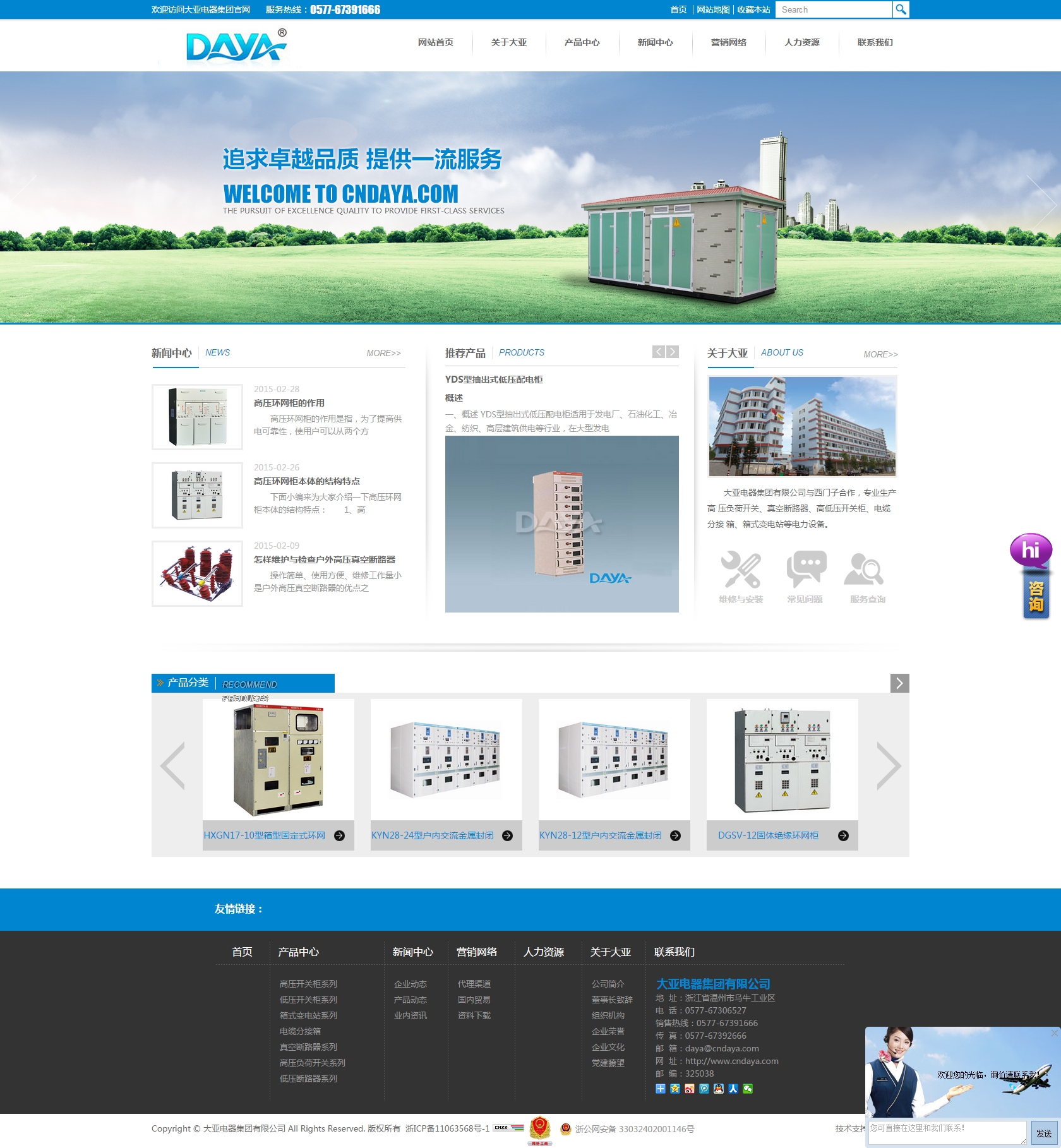 大亞電器集團(tuán)有限公司(前身浙江大亞電 器設(shè)備廠)創(chuàng)辦于一九八八年,八九年和上海電器 科學(xué)研究所技術(shù)合作。九零年榮獲原機(jī)械工業(yè)部、 電力工業(yè)部生產(chǎn)高低壓開關(guān)成套設(shè)備定點(diǎn)企業(yè)、國 家經(jīng)貿(mào)委兩網(wǎng)改造推薦產(chǎn)品企業(yè)。2016年與西班牙西蒙電力科技有限公司中外合資組成更強(qiáng)大的集團(tuán)公司。