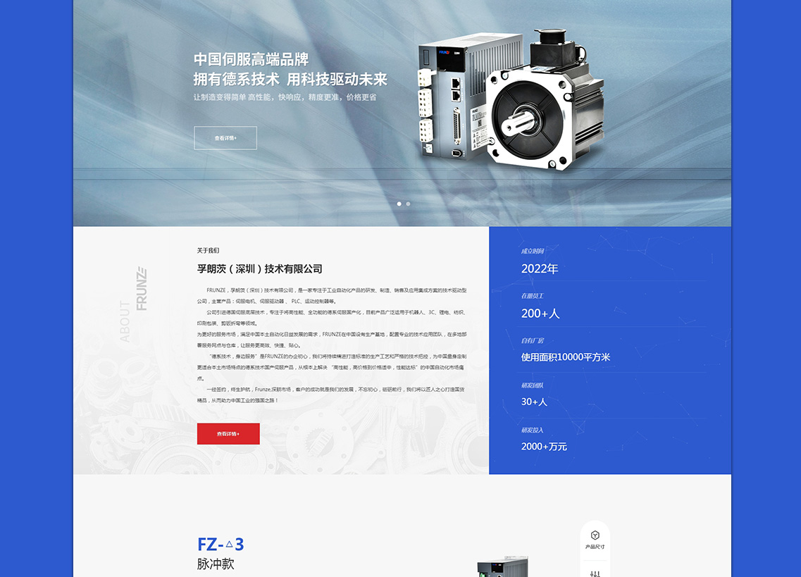 FRUNZE,孚朗茨(深圳)技術有限公司,是一家專注于工業(yè)自動化產品的研發(fā)、制造、銷售及應用集成方案的技術驅動型公司,主營產品:伺服電機、伺服驅動器 、 PLC、運動控制器等。公司引進德國伺服底層技術,專注于將高性能、全功能的德系伺服國產化,目前產品廣泛運用于機器人、3C、鋰電、紡織、印刷包裝、剪鈑折彎等領域。