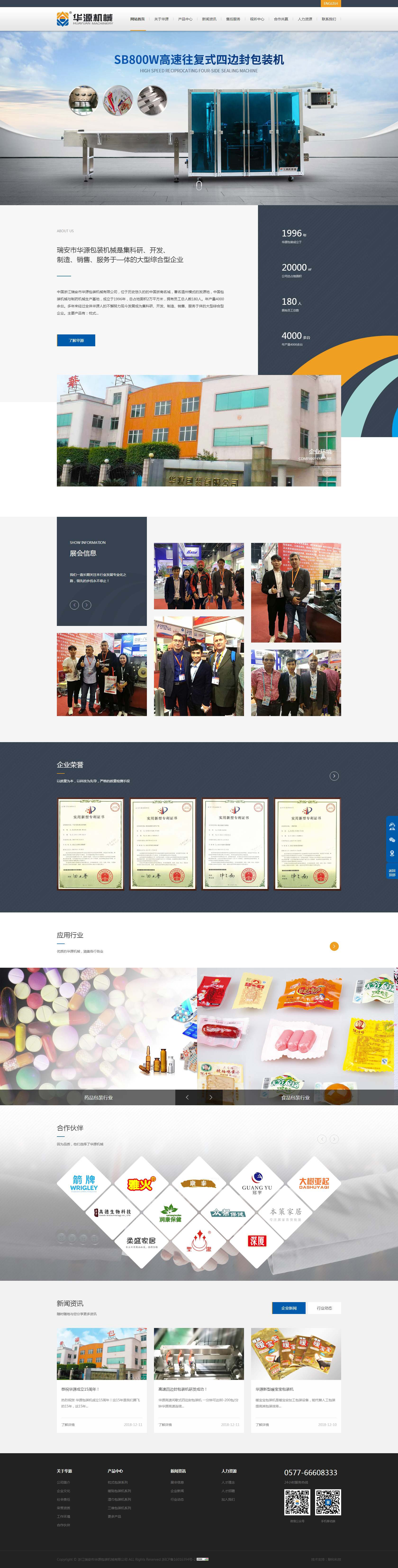 中國·浙江瑞安市華源包裝機械有限公司,位于歷史悠久的的中國“浙南名城”,“溫州模式”的發(fā)源地,中國包裝機械與制藥機械生產(chǎn)基地,成立于1996年,總占地面積2萬平方米,擁有員工總人數(shù)180人。年產(chǎn)量4000余臺。多年來經(jīng)過全體華源人的不懈努力現(xiàn)今發(fā)展成為集科研、開發(fā)、制造、銷售、服務于—體的大型綜合型企業(yè)。