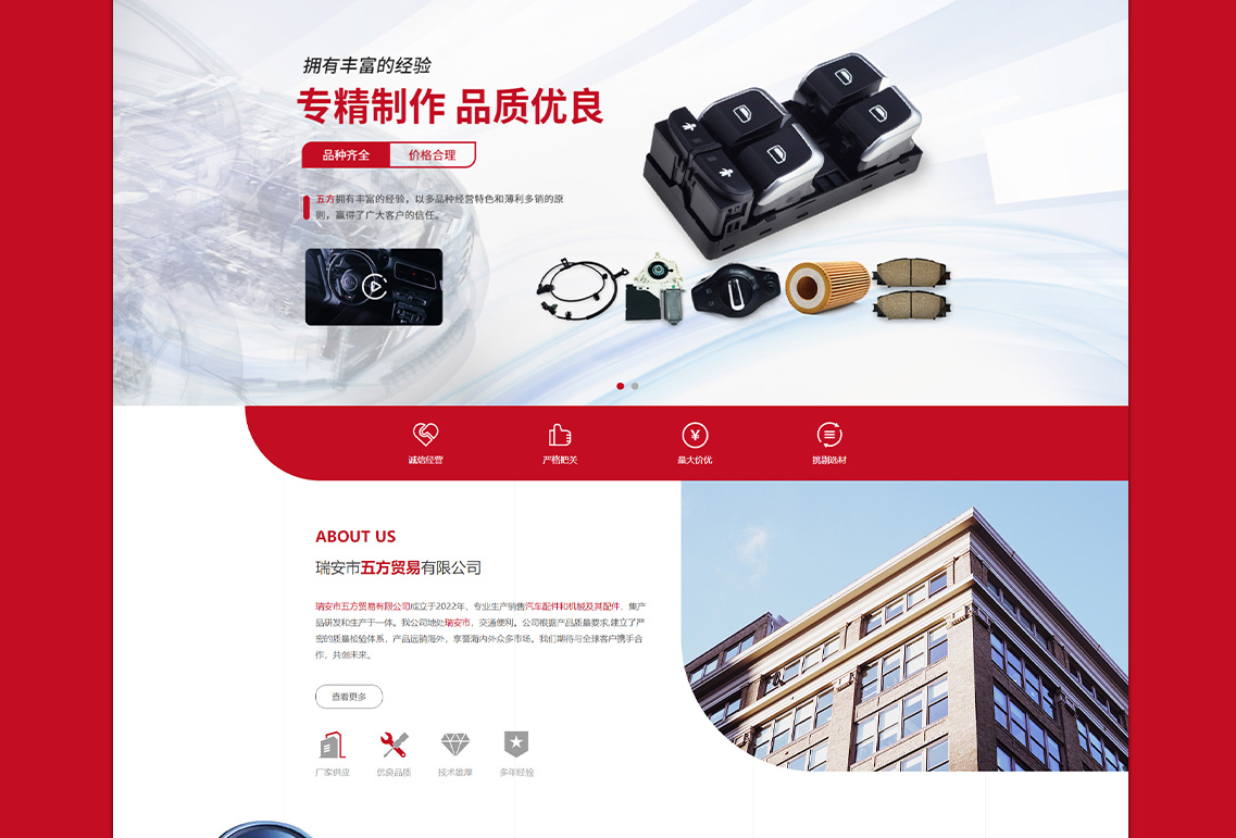瑞安市五方貿(mào)易有限公司成立于2022年,專業(yè)生產(chǎn)銷售汽車配件和機械及其配件,集產(chǎn)品研發(fā)和生產(chǎn)于一體。我公司地處瑞安市,交通便利。公司根據(jù)產(chǎn)品質(zhì)量要求,建立了嚴密的質(zhì)量檢驗體系,產(chǎn)品遠銷海外,享譽海內(nèi)外眾多市場。我們期待與全球客戶攜手合作,共創(chuàng)未來。