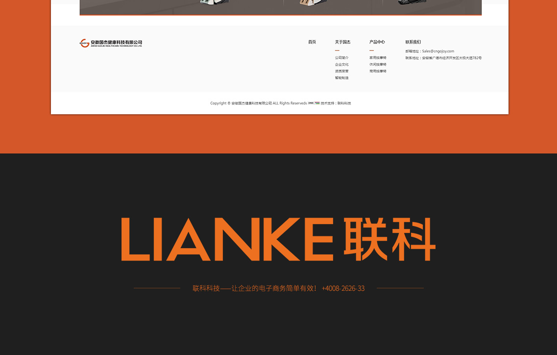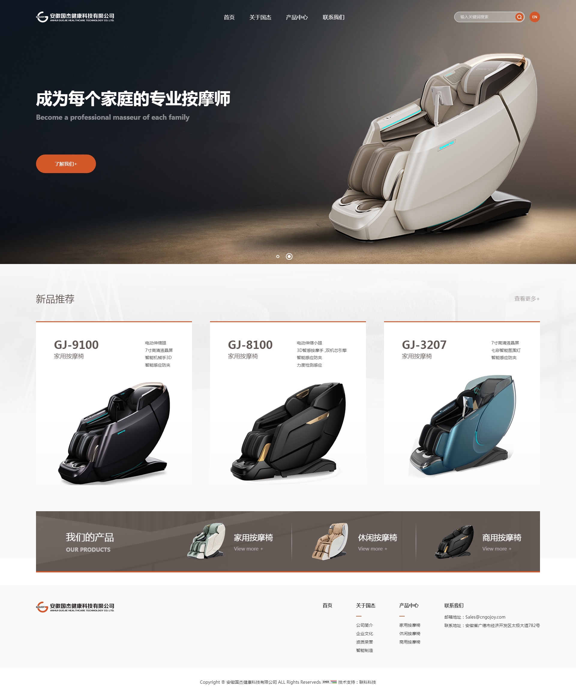 安徽國(guó)杰健康科技有限公司是一家中國(guó)知名的按摩健身器材專業(yè)生產(chǎn)制造商,集產(chǎn)品研發(fā)、制造、銷售和服務(wù)為一體的高新技術(shù)型企業(yè),中國(guó)醫(yī)藥保健品進(jìn)出口商會(huì)常務(wù)會(huì)員單位。公司主營(yíng)業(yè)務(wù)豪華按摩椅、商務(wù)休閑按摩椅和SPA足浴椅三大系列高新技術(shù)健康產(chǎn)品,旗下?lián)碛小癎OJOY”、“EASELIFE”兩大知名品牌。