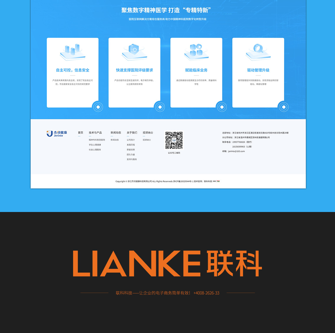 浙江杰翎健康科技有限公司 是一家專注于心理健康服務(wù)產(chǎn)品化與精神專科診療信息化技術(shù)研發(fā)的高新技術(shù)企業(yè)。自公司成立以來,我們始終秉持“秉承“科技引領(lǐng)未來,創(chuàng)新驅(qū)動發(fā)展”的理念,不斷推動醫(yī)療行業(yè)的數(shù)字化轉(zhuǎn)型和智能化升級,能夠為客戶提供定制化的解決方案和優(yōu)質(zhì)的服務(wù),同時也在社會責(zé)任方面積極履行,致力于為社會創(chuàng)造更美好的未來。