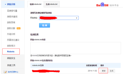 如果看到robots內(nèi)容和你更改后的內(nèi)容不一致,有幾種可能:第一種可能是網(wǎng)站沒有全面布局,因為有的站點服務(wù)器可能在很多地方,你需要確認robots是否已全部推送;第二種可能是百度沒有及時做更新,可以通過robots檢測工具下方的更新按鈕來告訴百度Robots有變化。