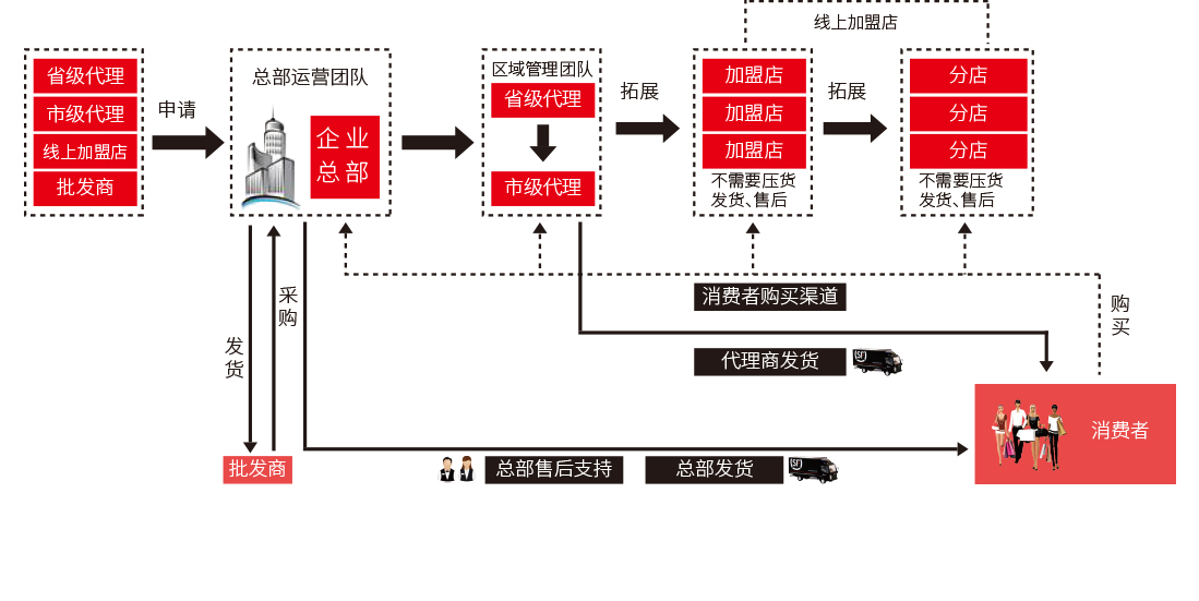 代理商拓展體系借鑒線下區(qū)域代理模式,